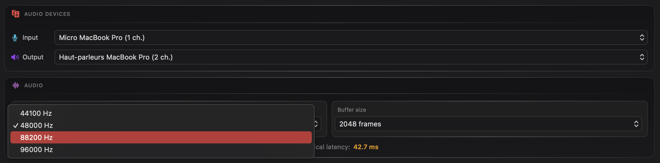 | 512 frames | ~10.7 ms | Production, heavy plugins |